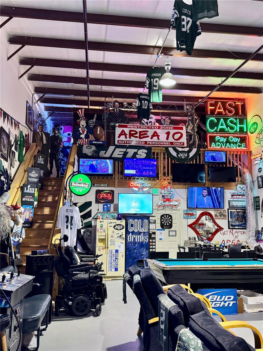 "Ultimate Man Cave Paradise: Seasoned Warehouse Haven for Enthusiasts" Unleash Your Inner Enthusiast in this Spacious Warehouse Oasis! Are you ready to take your hobbies to the next level? Look no further! This expansive warehouse is perfectly suited for the ultimate man cave, car enthusiast's dream, or entertainment hub. With endless possibilities, this property being sold as you see it offers a turn key mancave space. Features: Spacious Warehouse: 1725 sq. ft. of open space for your dream man cave, workshop, or entertainment area. High Ceilings: Plenty of room for overhead storage, car lifts, or display cases Featuring 2- Office spaces, 2 restrooms, 1 full and 1 1/2 bath and a reception area. Enclosed Mezzanine space 24'x19' for your private retreat. Dedicated Areas: Potential for separate zones for: Car enthusiasts: garage, workshop, and display area Gaming and sports: large screen TV,'s gaming, and lounge area, Entertainment: bar, pool table, kitchen set up, and social area Storage: ample space for tools, equipment, and collectibles Customization Opportunities: Exposed ductwork, and concrete floors, provide a unique backdrop for your creative vision Security and Access: Secure entry, potential for private parking, and easy access for large equipment or vehicles Potential Uses: Man cave retreat Car restoration and customization shop Gaming and esports arena Sports memorabilia display and entertainment space Home gym or fitness studio Art studio or workshop Storage facility for classic cars, motorcycles, or other vehicles Endless Possibilities Await! Don't miss this rare opportunity to own a versatile warehouse space that can be tailored to your passions and interests. Whether you're a car enthusiast, gamer, or entertainer, this property offers the perfect setting, bring your ideas to life and enjoy the perfect gathering spot! Schedule a viewing today and start making it your dream space!